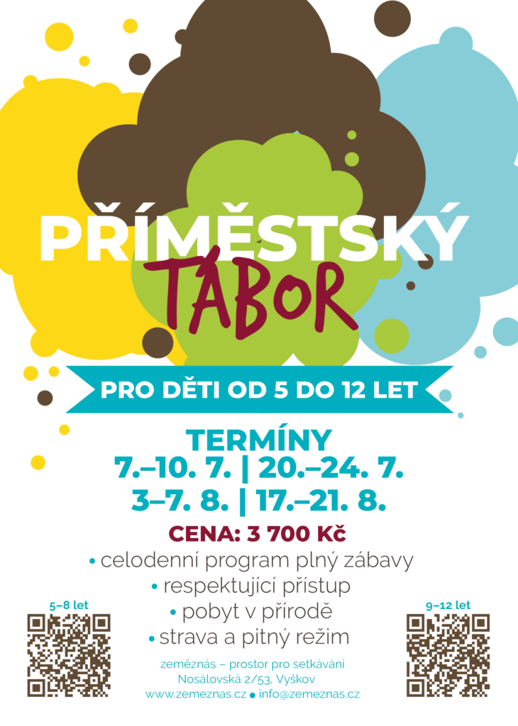 Čas: hlavní program tábora probíhá denně od 8:30 do 16:00, děti mohou přicházet již od 7:00 a vyzvednout si je můžete až do 17:00.